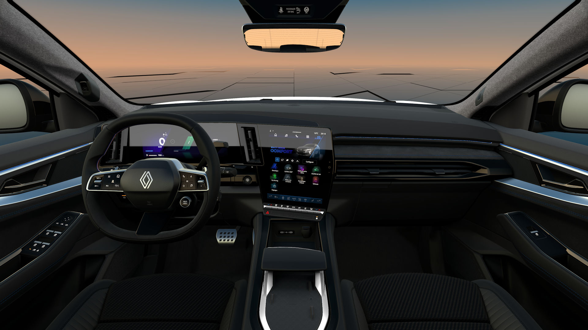 - City Premium pakotne: 360° kamera (priekšējā, aizmugurējā un 2 kameras sānu spoguļos), Aizmugurējie/priekšējie/sānu parkošanās sensori + brīvroku parkošanās sistēma (HFP), Elektriski regulējami, nolokāmi, apsildāmi ar atmiņas funkciju sānu spoguļi, Zemes apgaismojums sānu spoguļos Renault logo